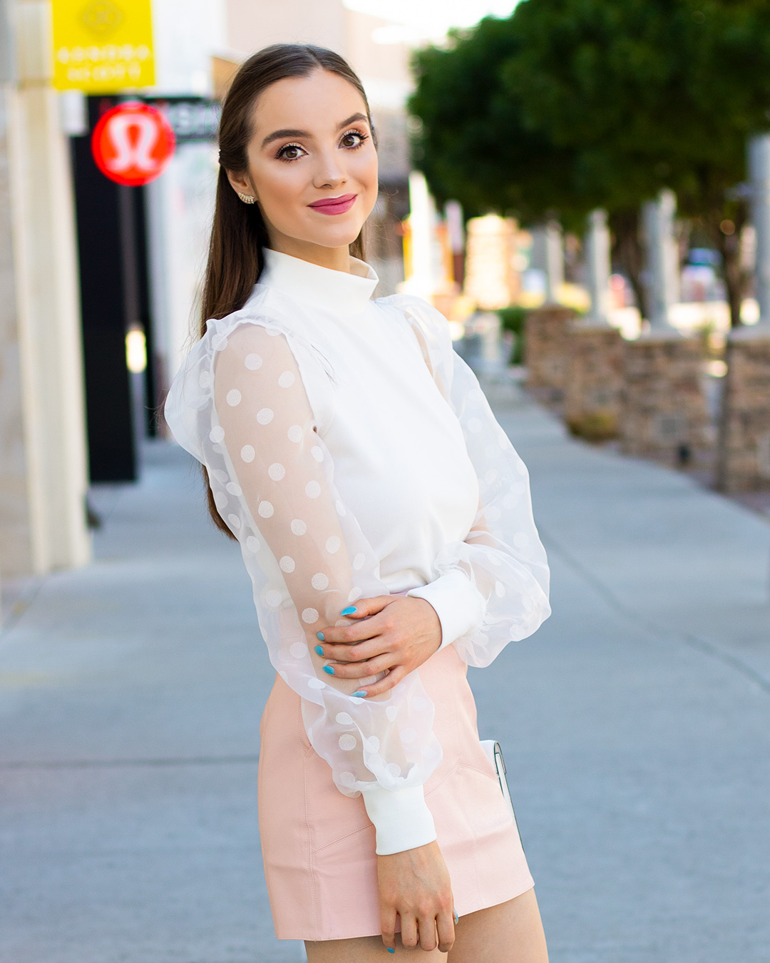 This bodysuit is from Lulu’s, and I love it! The sheer sleeves add an extra touch to the classic look. I’m also obsessed with this fake leather skirt from Lulu’s. You might recognize it from my last post, it’s actually the same skirt in a different color!